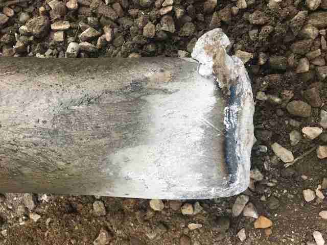 Carbide core demolition tools are designed with these conditions in mind. Carbide, also known as tungsten carbide, is one of the hardest and most abrasive resistant materials available and stands up better than any other metals used in hydraulic breaker chisels and moils against extreme heat generated by a hydraulic hammer tool striking against hard material. If you’ve ever touched a hydraulic breaker bit that has recently been pounding on a piece of rock, you know you can burn your hand on it! Under these conditions, conventional or standard boom mounted demolition tools will exhibit “bluing” as the metal is overheated and the chisel, moil or blunt tool loses its temper. After that point, as the hydraulic hammer continues to run, the hammer steel takes on a melted or mushroom shape, as shown below.